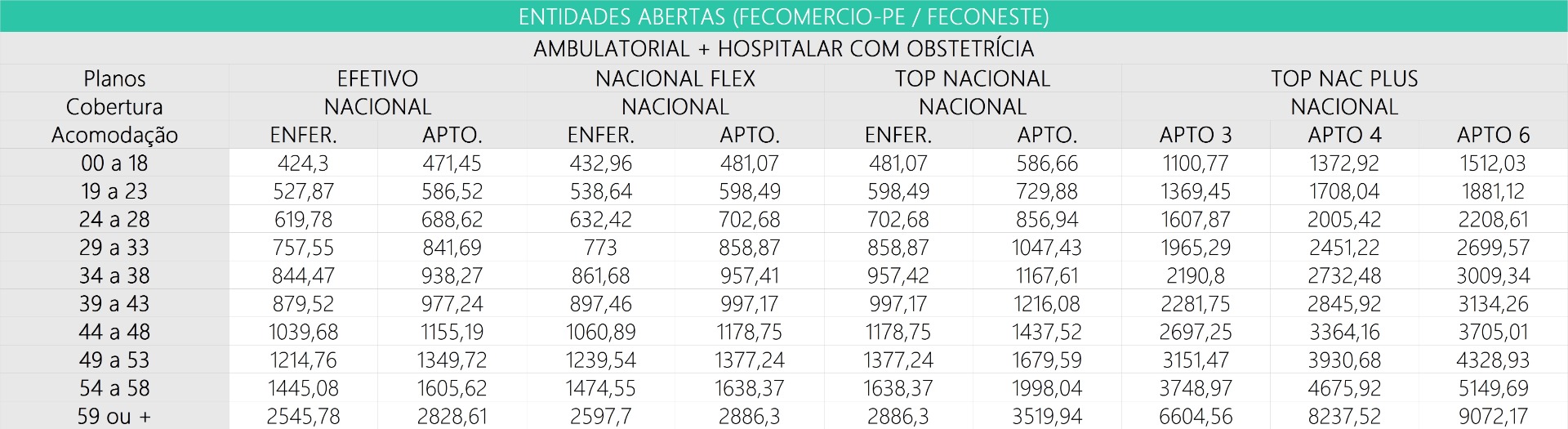 Tabelas de Preços